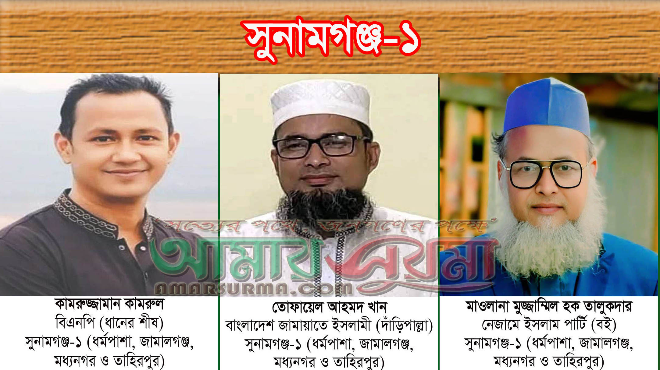 চারটি উপজেলা নিয়ে গঠিত সুনামগঞ্জ-১ আয়তনের দিক থেকে জেলার সবচেয়ে বড় আসন। এ আসনে প্রতিদ্বন্দ্বীতা করছেন বিএনপি মনোনীত কামরুজ্জামান কামরুল (ধানের শীষ), বাংলাদেশ জামায়াতে ইসলামীর সুনামগঞ্জ জেলার আমির উপাধ্যক্ষ তোফায়েল আহমদ খান (দাঁড়িপাল্লা) ও নেজামে ইসলাম পার্টির মাওলানা মুজ্জাম্মিল হক তালুকদার (বই)। এখানে মূল লড়াই হবে দ্বিমুখী বিএনপি ও জামায়াতের মধ্যে। এখানে বিএনপি থেকে জাতীয়তাবাদী কৃষক দলের কেন্দ্রীয় সহ-সাধারণ সম্পাদক ও সাবেক উপজেলা চেয়ারম্যান আনিসুল হকও পেয়েছিলেন দলীয় মনোনয়ন। অবশেষে তিনি তার প্রার্থীতা প্রত্যাহার করে ধানের শীষের পক্ষে তিনি ব্যাপক প্রচার-প্রচারণা চালিয়ে যাচ্ছেন। ৩১ দফার পক্ষে জনমত গঠনের লক্ষ্যে করেছেন সভা, সমাবেশ আর উঠান বৈঠক। তবে শেষমেষ তিনি দলের প্রতি আনুগত্য প্রদর্শন করে প্রত্যাহার করে নেন তার প্রার্থীতা।