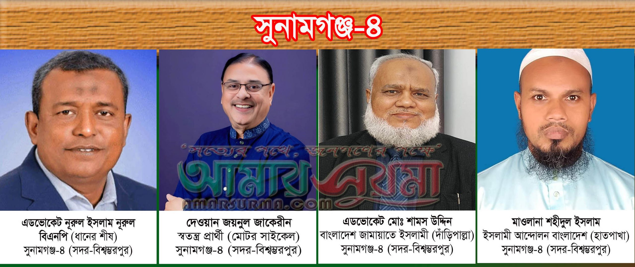 এখানে তিনবারের সাবেক এমপি কলিম উদ্দিন আহমেদ মিলনের সঙ্গে জামায়াতের সিলেট মহানগরের মজলিসে শুরা সদস্য আবু তাহির মুহাম্মদ আব্দুস সালামের লড়াই হওয়ার আভাস পাওয়া যাচ্ছে। এছাড়াও দলীয় প্রার্থীকে সমর্থন জানিয়ে নিজের প্রার্থীতা প্রত্যাহার করেছেন সুনামগঞ্জ-৫ আসনের স্বতন্ত্র প্রার্থী বিএনপির কার্যনির্বাহী কমিটির সদস্য মিজানুর রহমান।